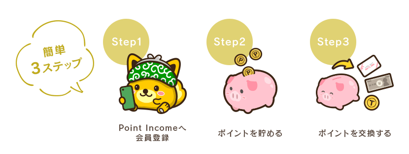 - 貯めたポイントは現金・電子マネー・ギフト券などに交換可能