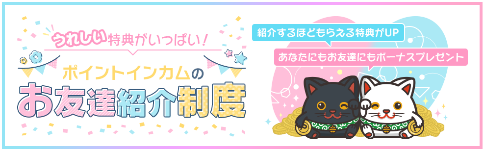 友達紹介を経由してポイントインカムに入会すると、次のような特典をゲットできます。