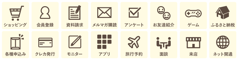 - ショッピング(楽天、Yahoo!ショッピングなどの通販で買い物)