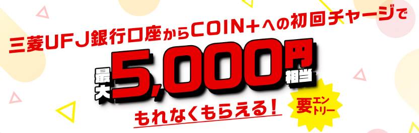 三菱UFJ銀行 COIN+初チャージ|最大5,000円|2025/11/4~2026/3/31