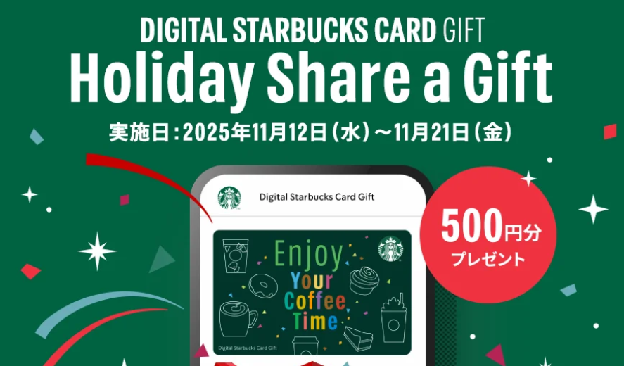 - 【先着】スタバ デジタルカードギフト購入|500円|11/12~11/21