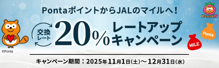 - Pontaポイント→JALマイル交換|20%増量|11/1~12/31
