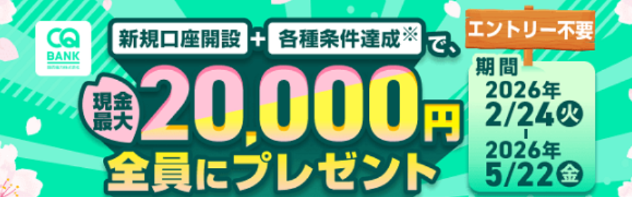 - CQ BANK 口座開設など|10,000~25,000円|2/24~5/22