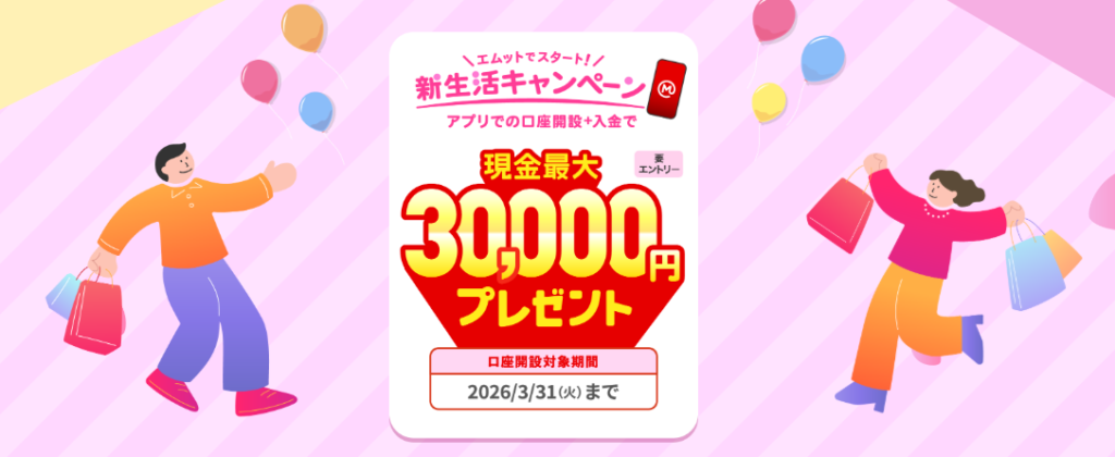 ② 新生活キャンペーン(口座開設)|30,000円|1/7~3/31